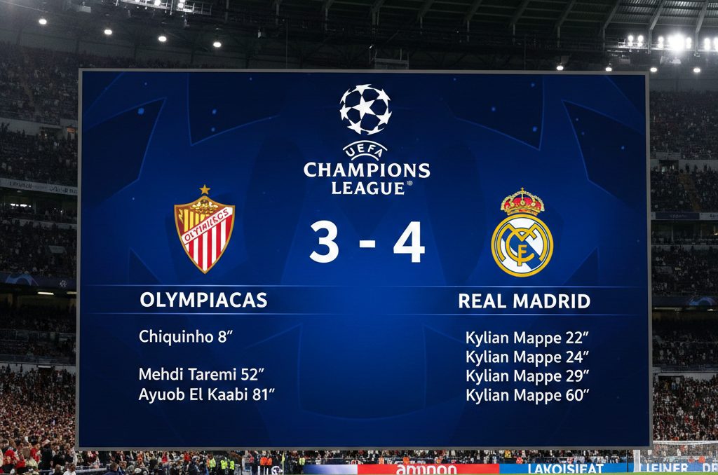 Real Madrid Secures Thrilling 4-3 Victory Over Olympiacos in UEFA Champions League Showdown Madrid, Spain…